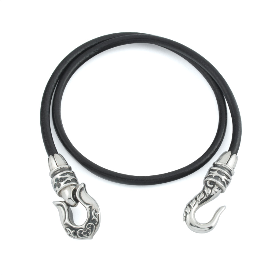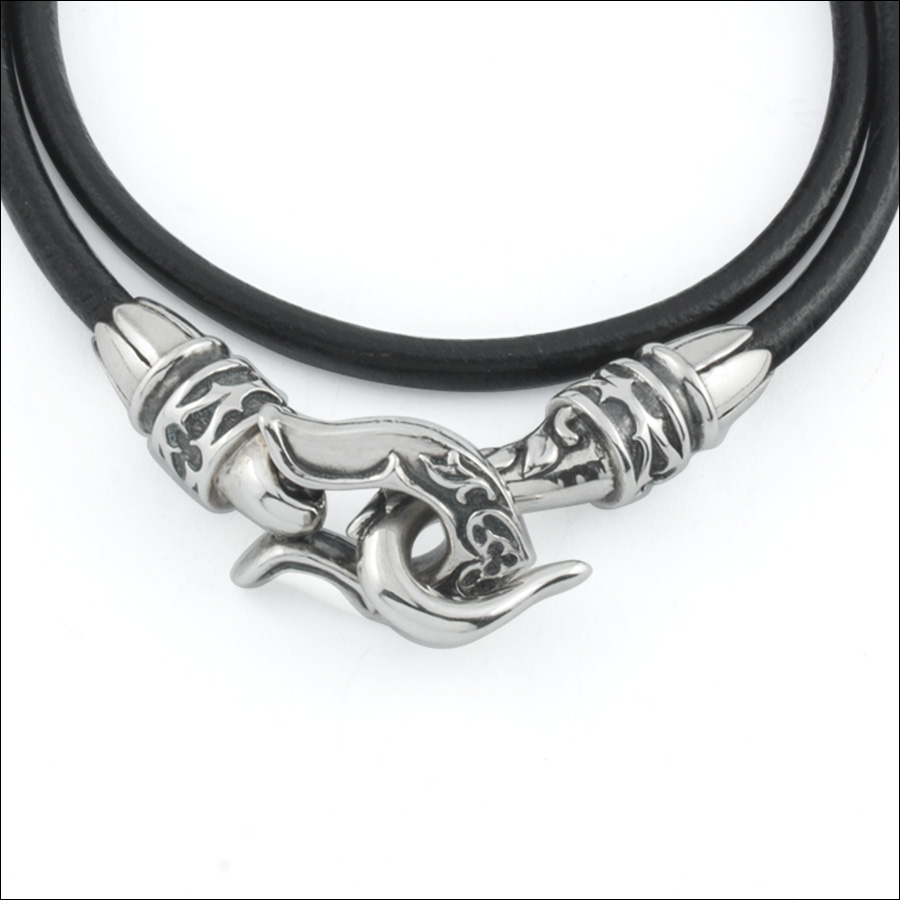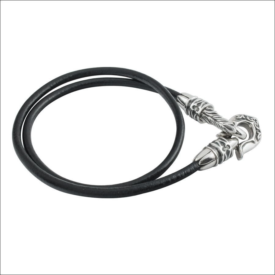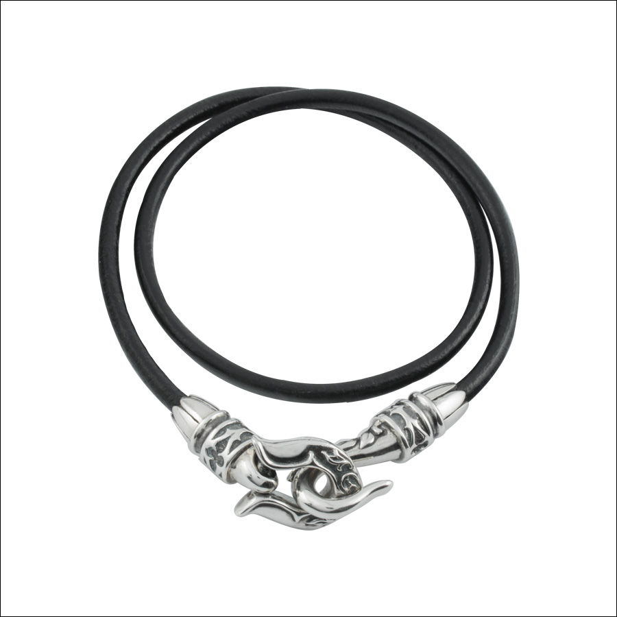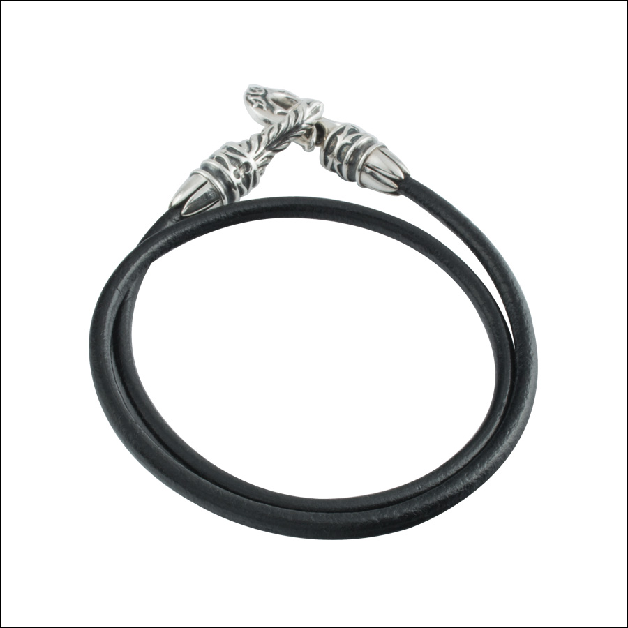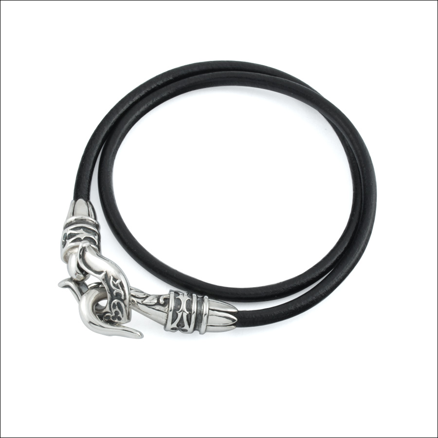 蹄鉄モチーフを基本にデザインをした優雅で上品で流麗なフォルムのブレス。 シルバー本来の美しさが引き立つ程よい質感バランスで仕上げられたシルバーと、 二重のレザーコードが見事に調和をしたアクセサリー。 高級感ある程良い重量感と着け心地が見事に両立。