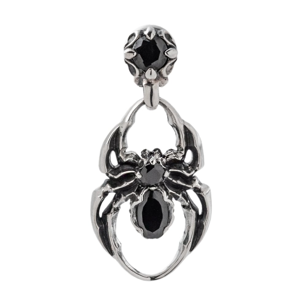 蜘蛛モチーフのピアス。蜘蛛は幸運を掴む、夢を掴むモチーフ。ダークなモチーフがクールな作品。石はブラックジルコニアをセット。繊細に彫り込んだデザインで精巧な作り。