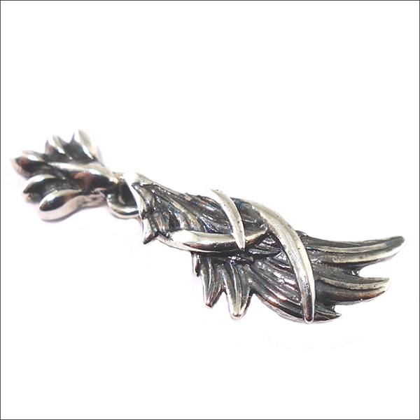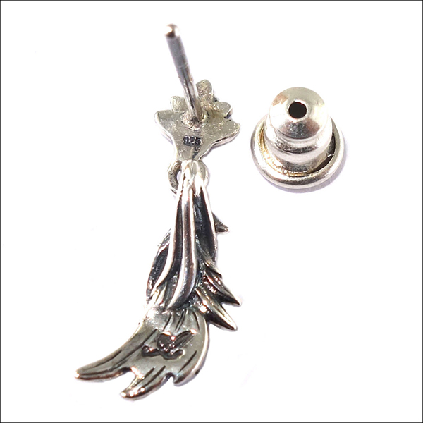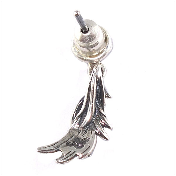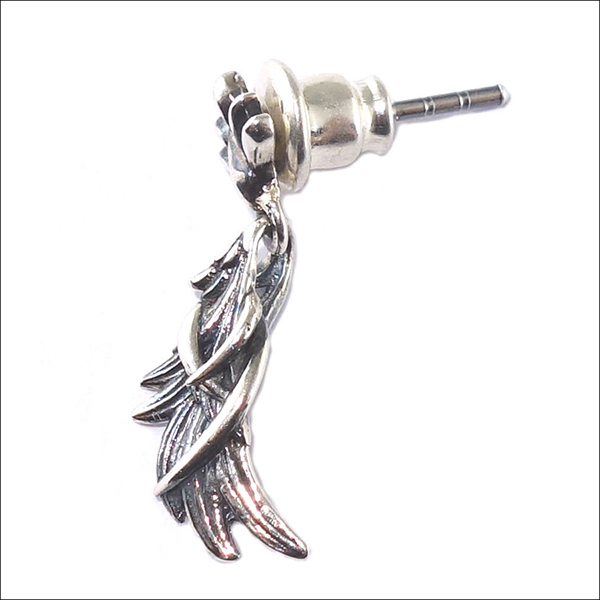 大天使の翼をイメージした躍動感溢れるピアス。 翼をアレンジした前衛的デザイン。 羽根の一枚一枚まで、丁寧に造られた精巧な彫り込み。 また裏面もしっかりと羽根のデザインが施されております。 羽根には飛躍・上昇の意味があり、お守りや願掛けのアイテムとしてもオススメ。 耳元で揺れるドロップピアスは、お洒落のワンポイントにオススメ。