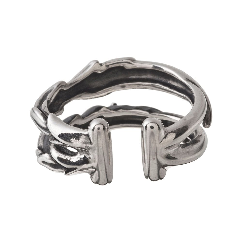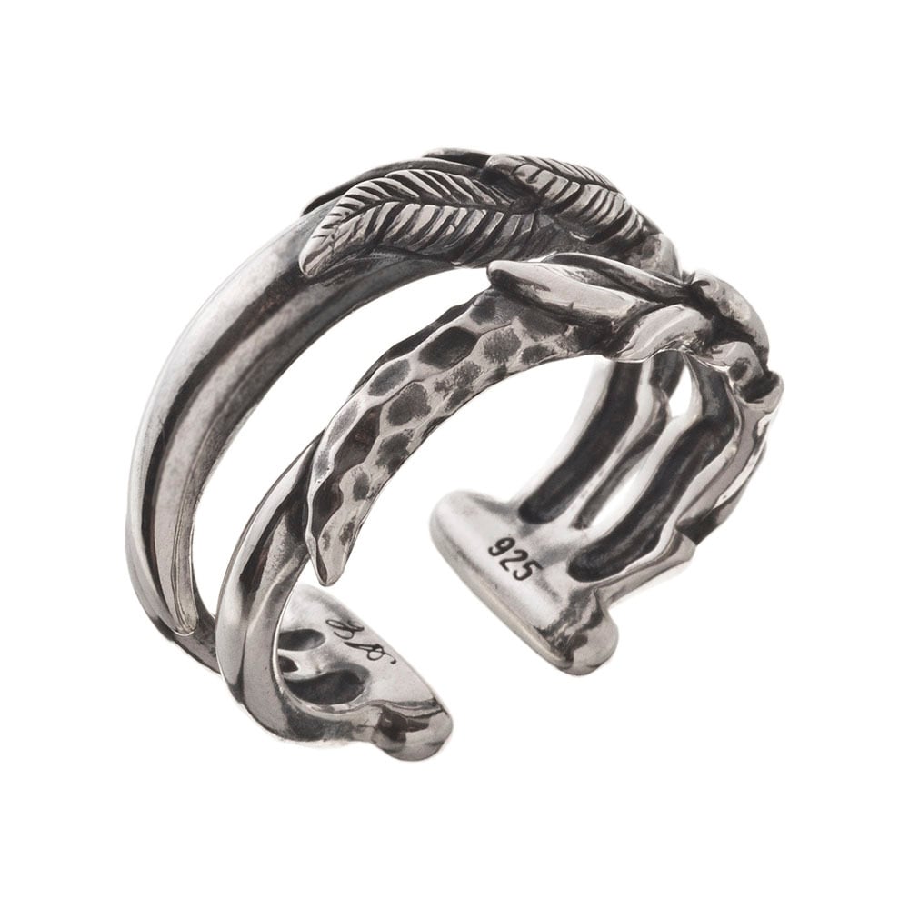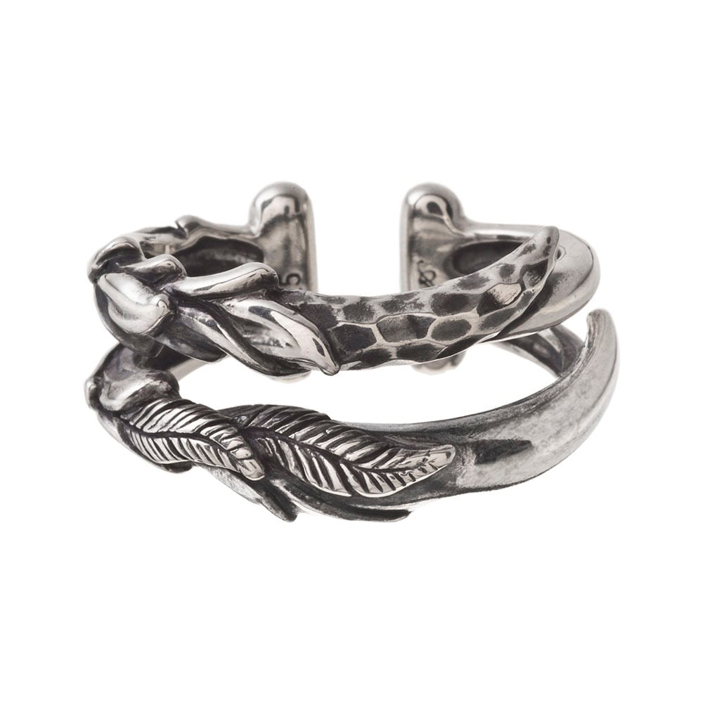 ピアスホールがなくても、耳をお洒落にコーディネート出来るイヤカフ。2連フープピアスを装着しているように見えるお洒落な仕様。装着は耳に挟み込んで使用します。天使ウリエルをイメージし、羽や翼、クローをデザインに落とし込んでおります。美しい銀の質感を活かしたデザイン。