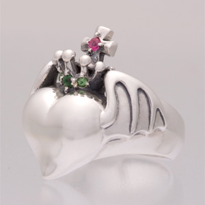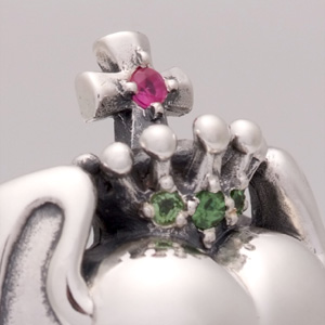 写真の使用石:ルビー×1、グリーンガーネット×3