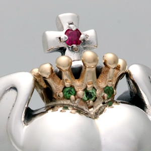 写真の使用石:ルビー×1、グリーンガーネット×3