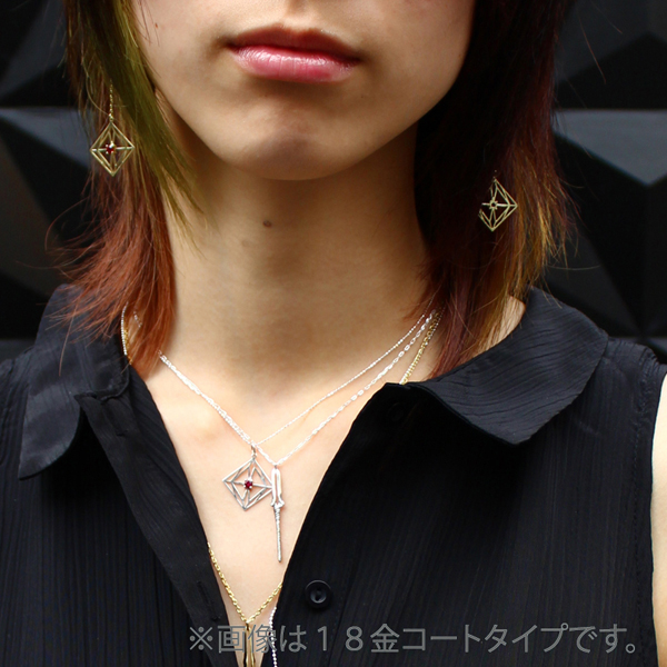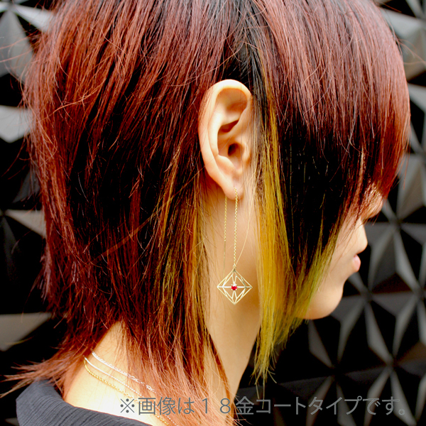 第6の使徒をモチーフに繊細なデザインに赤いシンセチックルビーを留めた ピアスのシリーズです、18金コートのタイプもあります。
