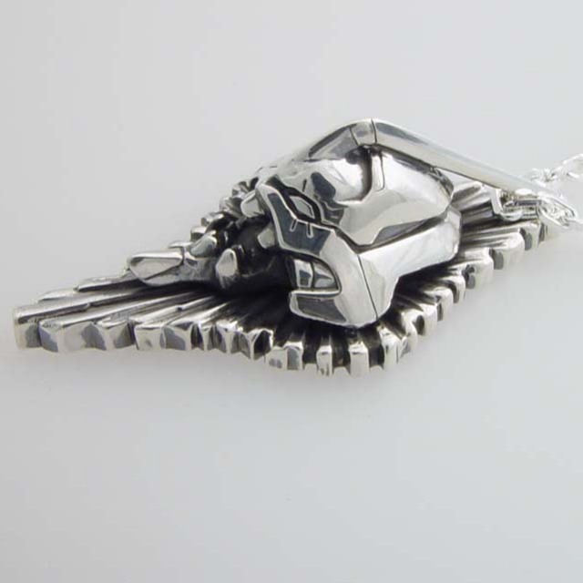 | 商品詳細 | 材質 SILVER925 付属品 ・チェーン ・箱( ロゴの焼き印が入ったパッケージ) 商品説明 暴走モードの初号機の顔を細部まで完璧に再現しました。 アクセサリーとしての洗練されたバランス感も追求。 裏面の隠れクロスの彫刻も、見えない部分までデザインしました。 ----------------------------------- 大きさ:23×45×16mm(横×縦×厚) 重量:約22g(チェーン含む) チェーンの長さ:40cm /50cm ※予約注文の際は商品代金を先払いにてご入金頂いております。納期は約1ヶ月程になります。 商品番号:ebp01 |