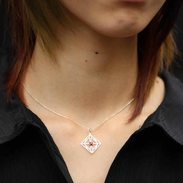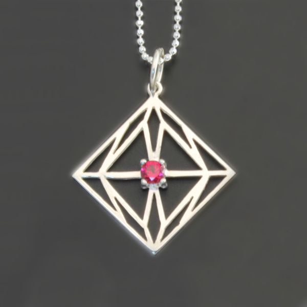 第6の使徒をモチーフに繊細なデザインに赤いシンセチックルビーを留めた ペンダントトップシリーズです。