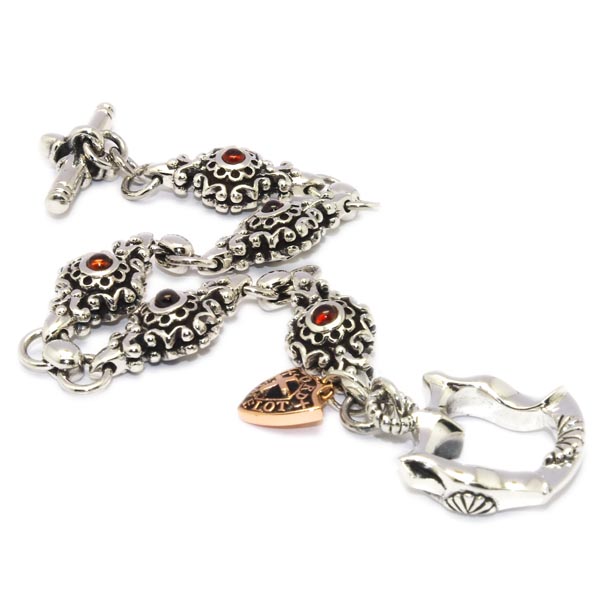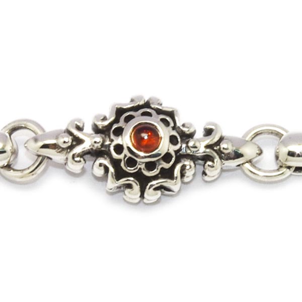 ガーネット入りのパーツを5コマ連結させ、全長約18cmとなっております。