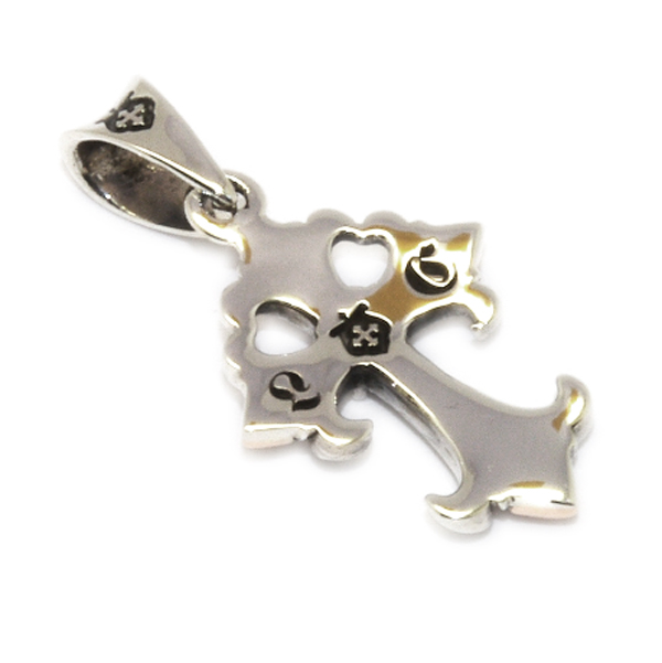 トレンドデザインである、小ぶりなクロスチャームを、ロードキャメロット独自の差材、ロイヤルシルバーとのコンビで仕上げた上品なアイテム。