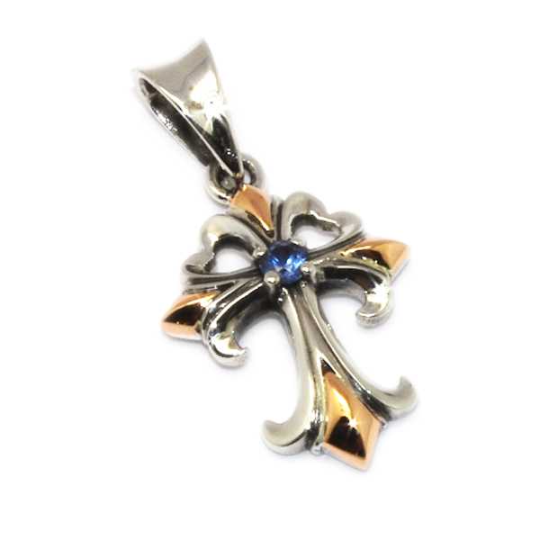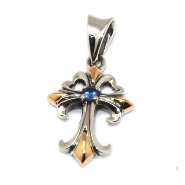 中央にはカットが美しい、天然のブルーサファイアをセットしたラグジュアリーなクロスペンダントです。