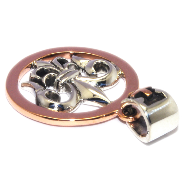 王家の紋章フレアモチーフを、サークル状のロイヤルシルバーで縁取った大変人気のペンダントです。