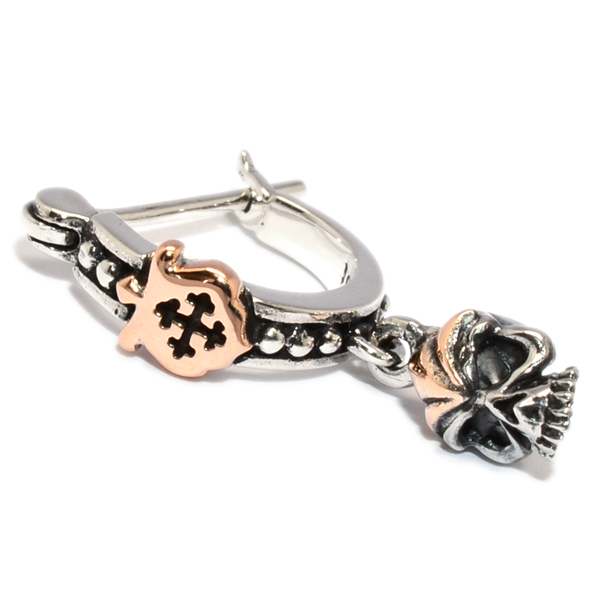 オーソドックスなフープタイプにロイヤルシルバーのエンブレム、さらにスカルをドロップさせたこだわりのピアス。