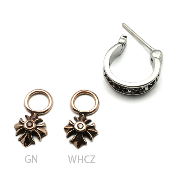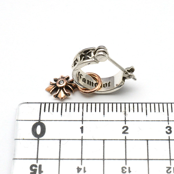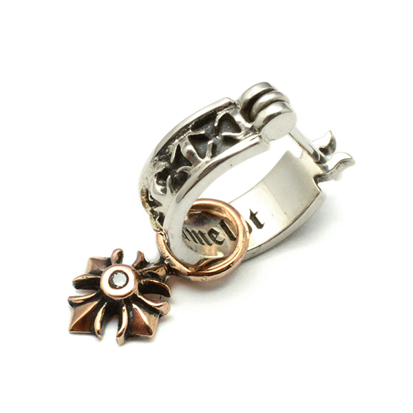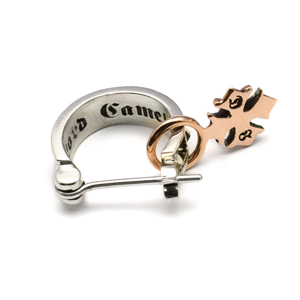 程良いサイズのフープタイプのピアスにロイヤルシルバーのクロスチャームがドロップしたピアスです。クロスチャームは取り外しが可能です。