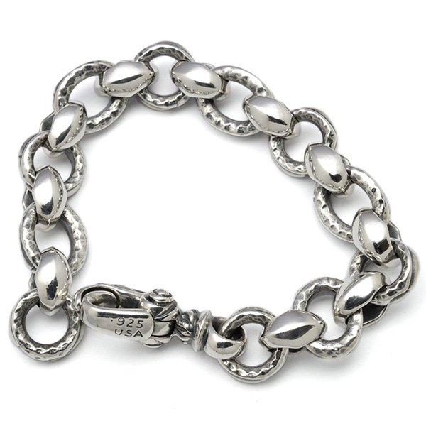 シルクとシグネットの2つのリンクが醸し出すコントラストが印象的なブレスレットです。十分な存在感を与えてくれます。