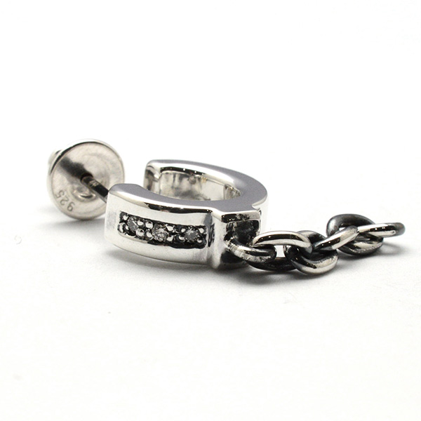 フープタイプのピアスにダイヤモンドとチェーンをセット。