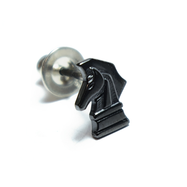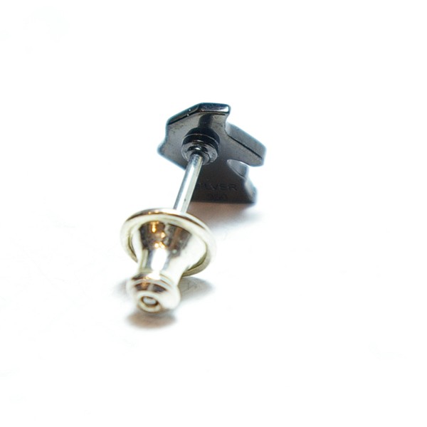 ブランドアイコンであるチェスナイトをモチーフにしブラックチタンコーティングを 施したピアス。