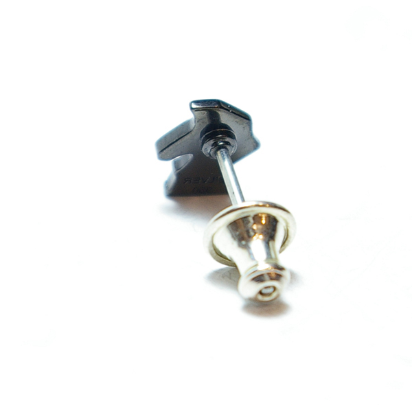 ブランドアイコンであるチェスナイトをモチーフにしブラックチタンコーティングを 施したピアス。