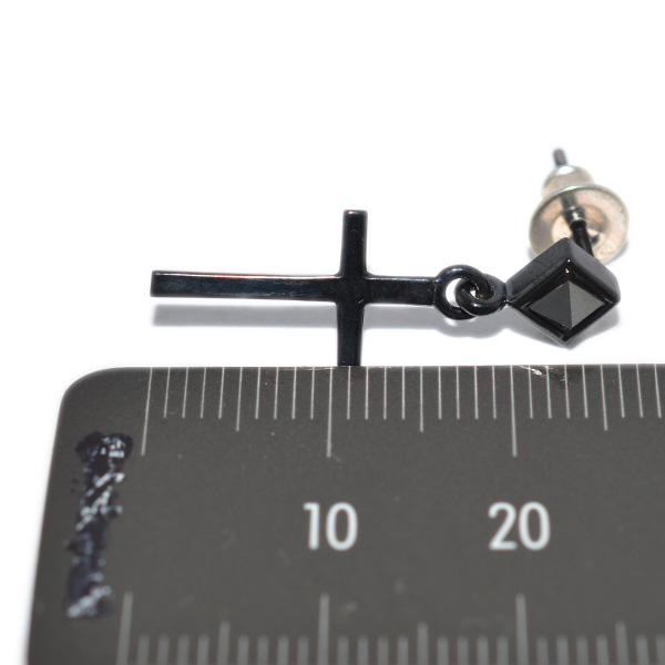 クロスがスウィングするブラックピアス。ベース部分はコーティングスタッズ、ストーンはヘマタイト。 (片方売りになります。)