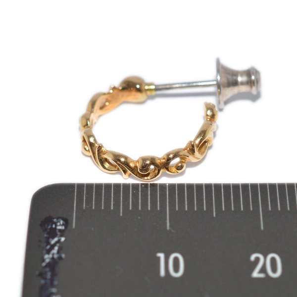18Kイエローゴールドのスクロールデザイン(唐草模様)フープピアス。洗練されたデザインでやや大きめの輪が耳元のアクセントになります。 (片方売りになります。)