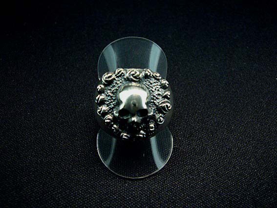 ☆ハートのフレームでスカルを飾ったリング。