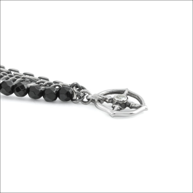 ブラックスピネルチェーンにシルバーアズキチェーンと変形シルバ喜平チェーンの3連ブレスレット。