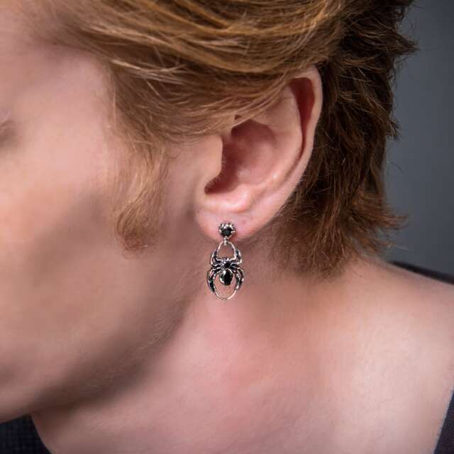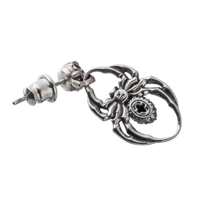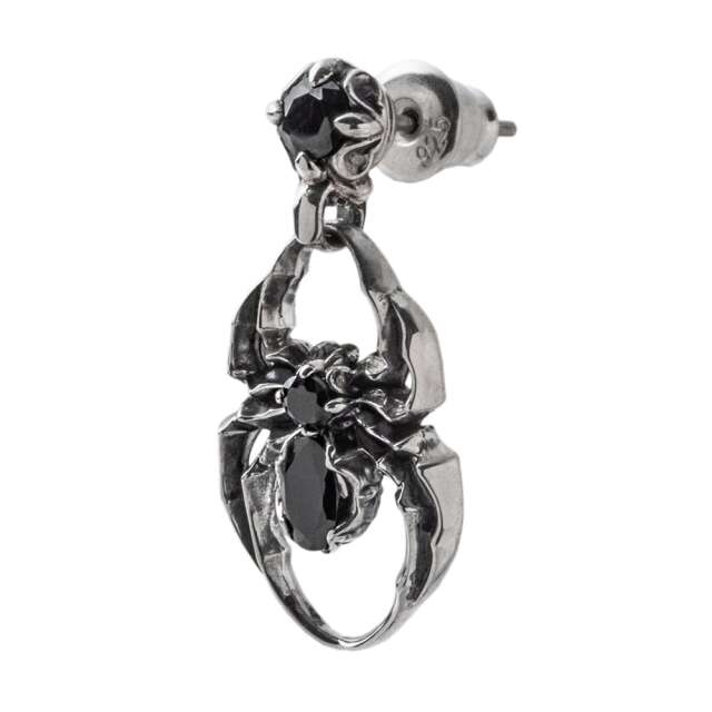 蜘蛛モチーフのピアス。蜘蛛は幸運を掴む、夢を掴むモチーフ。ダークなモチーフがクールな作品。石はブラックジルコニアをセット。繊細に彫り込んだデザインで精巧な作り。