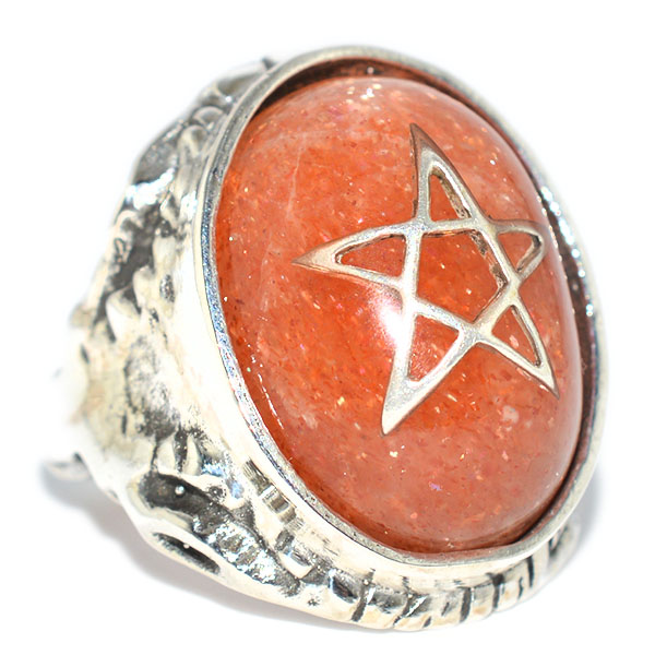 深い赤とオレンジの色合いが美しい天然石サンストーンがセットされています。古代ギリシャでは、サンストーンは太陽神ヘリオスの永遠の炎を内包していると信じられていました。サンストーンは、赤とオレンジの深い色合いが特徴の美しい天然石です。