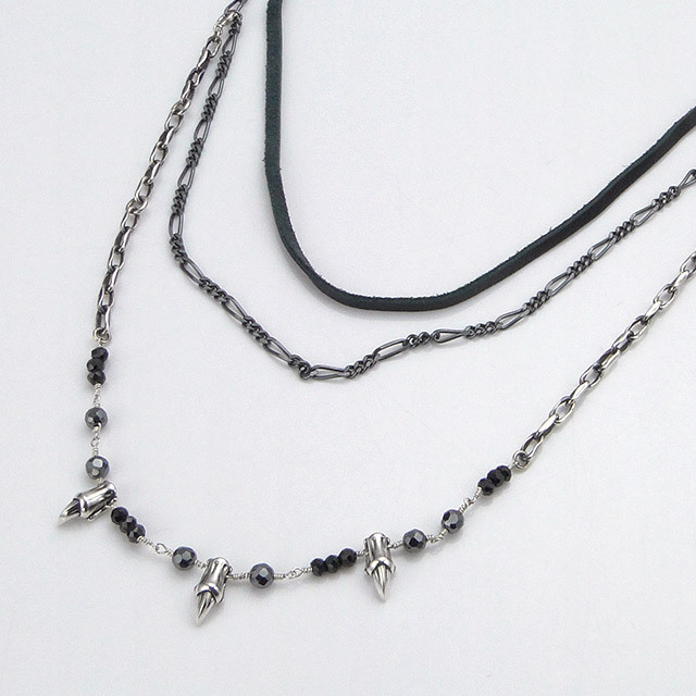【サイズ】ショートチェーン 全長:37cm(31.5cm、34.5cm部にアジャスター) チェーン 全長:79cm レザーネックレス 全長:76cm