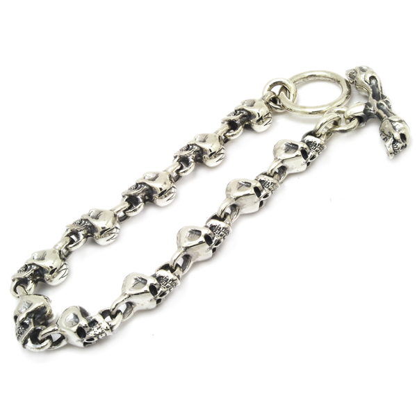 ミドルサイズのスカルを11リンクさせた、オーソドックスなスカルブレスレットです。
